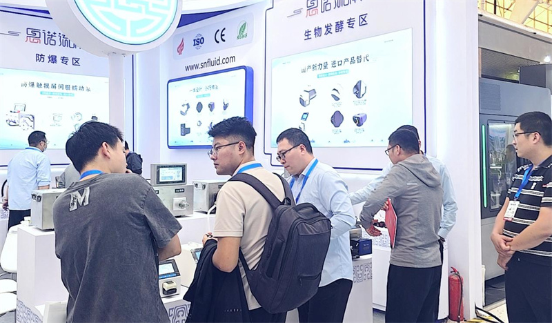 為期三天的展會,吸引了來自全國各地的參展商和觀眾,旨在助力制藥行業(yè)的健康快速發(fā)展。在展會現(xiàn)場,思諾流體展示了眾多蠕動泵產(chǎn)品,包括智能檢測蠕動泵系列產(chǎn)品,半自動灌裝流水線,灌裝系統(tǒng)蠕動泵,新研發(fā)的蠕動泵泵頭和OEM等,吸引了眾多參觀者駐足咨詢,展臺人氣旺盛。